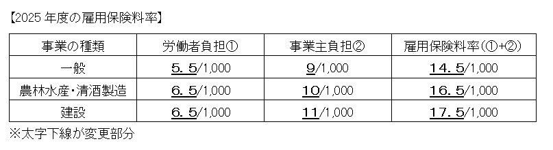 2025年雇用保険料率