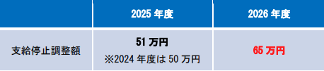 この支給停止調整額について、高齢者の活躍を後押しする観点で見直しが行われます。具体的には、2026年4月以降、支給停止調整額は、現行の51万円から65万円へと引き上げられます。